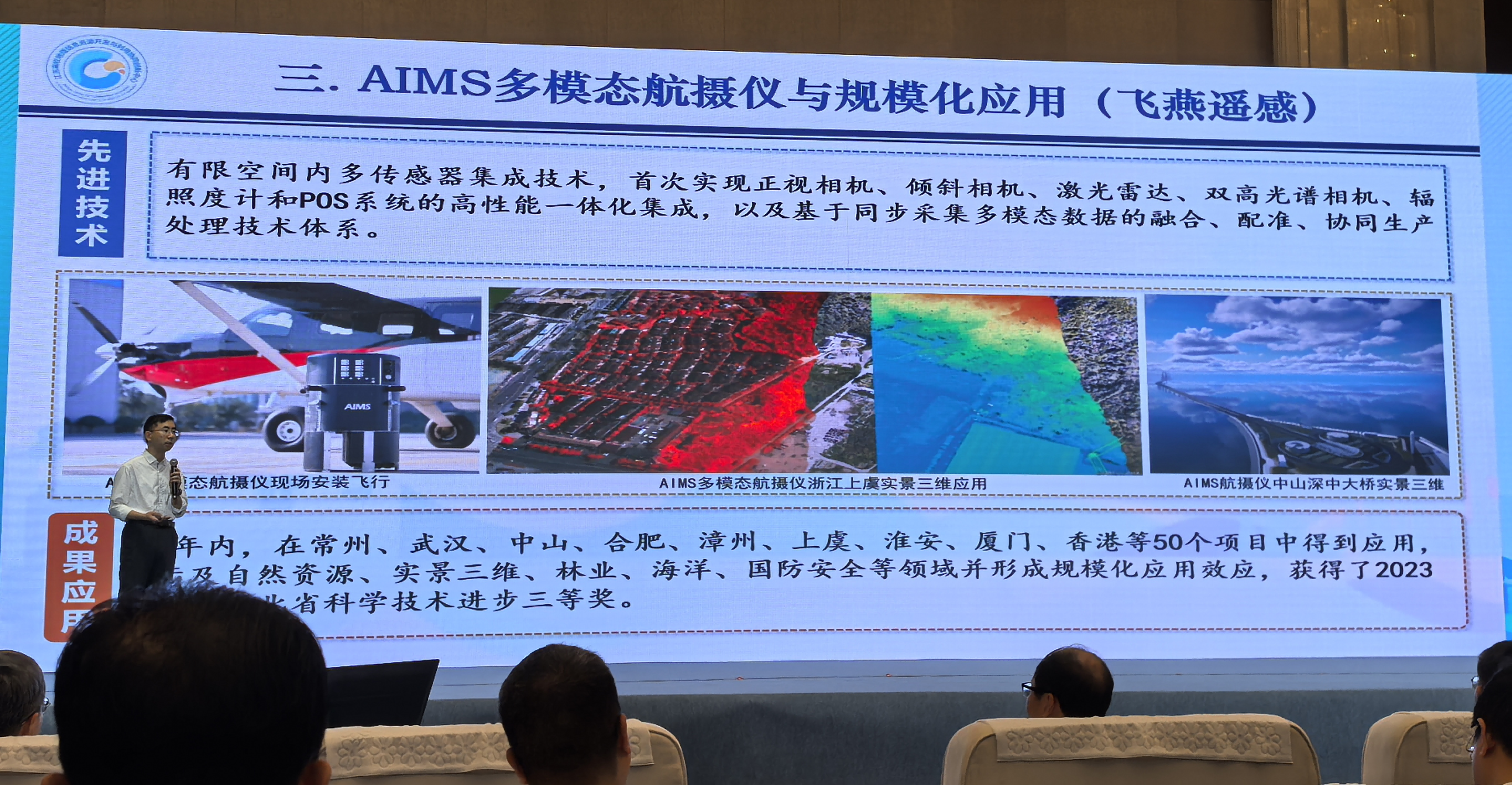 會上,多項地理信息協(xié)同創(chuàng)新代表性成果集中發(fā)布,省地理信息產(chǎn)業(yè)研究院副院長周良辰上臺發(fā)布最新成果。其中,飛燕遙感的AIMS多模態(tài)航攝儀的研制與規(guī)模化應(yīng)用關(guān)鍵技術(shù)把數(shù)據(jù)要素作為贏在未來的革新力量。能夠一次性獲取多模異構(gòu)、時相統(tǒng)一的航空遙感數(shù)據(jù),實現(xiàn)地物全要素精細感知優(yōu)勢。利用多模態(tài)數(shù)據(jù)協(xié)同提升處理、解譯和應(yīng)用的自動化、智能化水平,形成特征豐富、關(guān)聯(lián)性強的系列數(shù)據(jù)產(chǎn)品,助力實景三維建設(shè)。