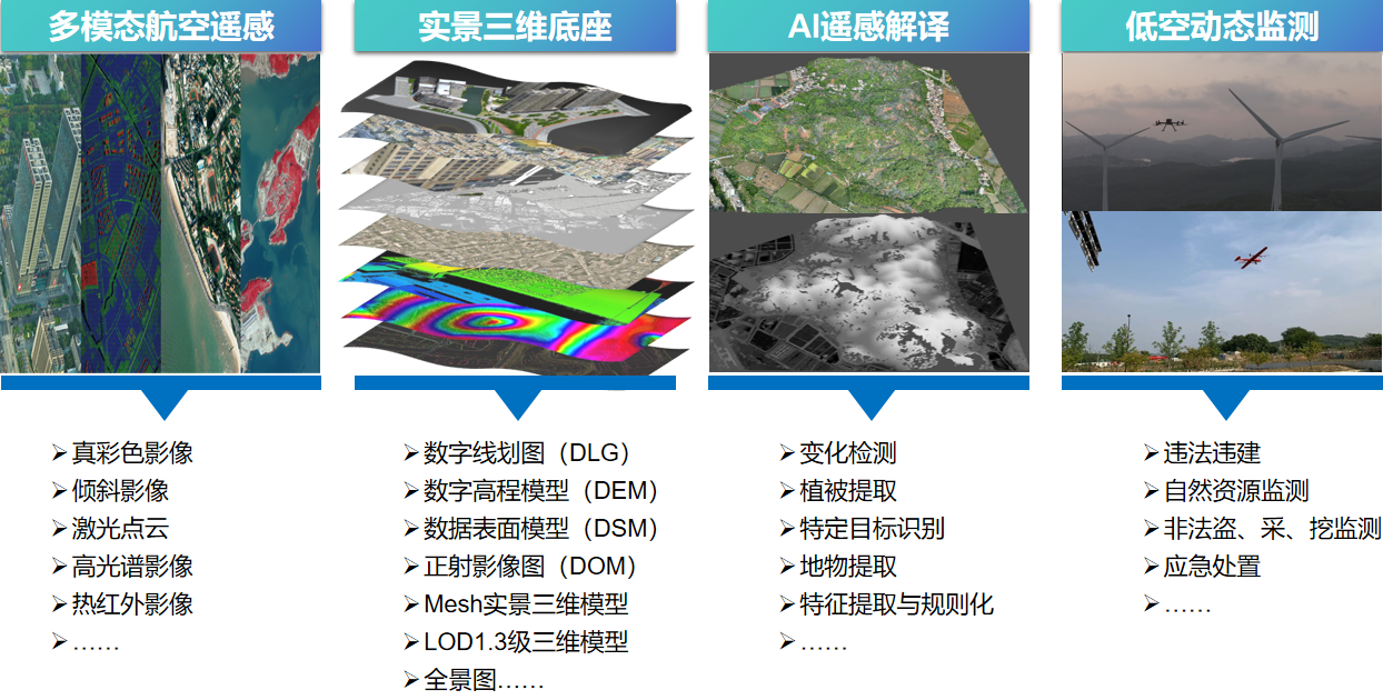 飛燕遙感使用有人機搭載自主研發(fā)的AIMS多模態(tài)航攝儀和自主研發(fā)的“遠瞰”低空無人值守系統(tǒng)進行協(xié)同進行三維地表動態(tài)多模態(tài)數(shù)據(jù)采集,能夠?qū)崿F(xiàn)廣域覆蓋與精細掃描的結(jié)合,既滿足大范圍監(jiān)測的需求,又能提供局部的高精度數(shù)據(jù),全面提升地表動態(tài)監(jiān)測的能力。采用多模態(tài)同步采集高相關(guān)性數(shù)據(jù)為地表動態(tài)監(jiān)測提供更全面易用的數(shù)據(jù)支持。針對具體場景進行協(xié)同采集,有效提升獲取效率和數(shù)據(jù)處理效果。