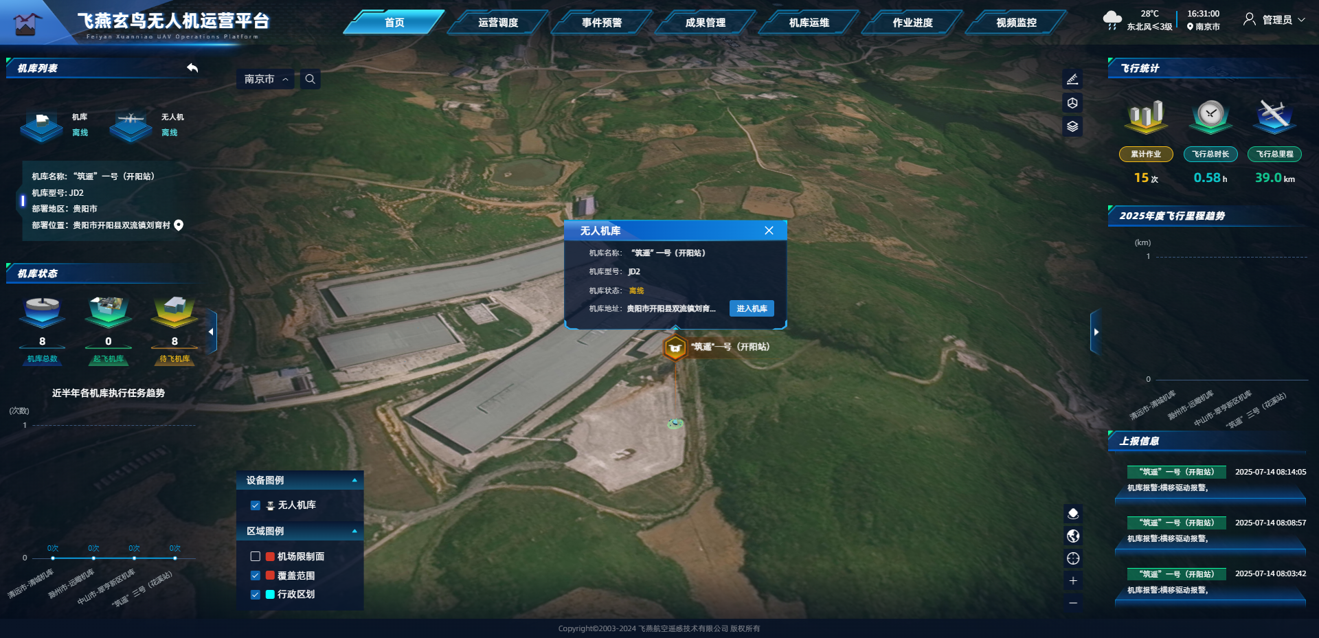 玄鳥無人機運營平臺作為系統(tǒng)的“智慧大腦”,支持遠程任務(wù)規(guī)劃、實時調(diào)度與智能分析,內(nèi)置40余種自研AI算法,可實現(xiàn)對煙霧、火點、河道漂浮物、違章建筑、土地變化等多種目標的自動識別與預警。該平臺已廣泛應用于耕地保護、電力巡檢、水利監(jiān)管、城市治理、農(nóng)林監(jiān)測等場景,將傳統(tǒng)依賴人力的巡檢模式轉(zhuǎn)型升級為高效、精準、智能的新型治理模。