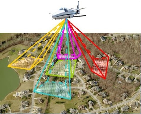 傾斜攝影傾斜航攝是通過在同一飛行平臺上搭載多臺傳感器,同時(shí)從垂直、多個(gè)側(cè)視等不同角度采集影像的測量技術(shù)。