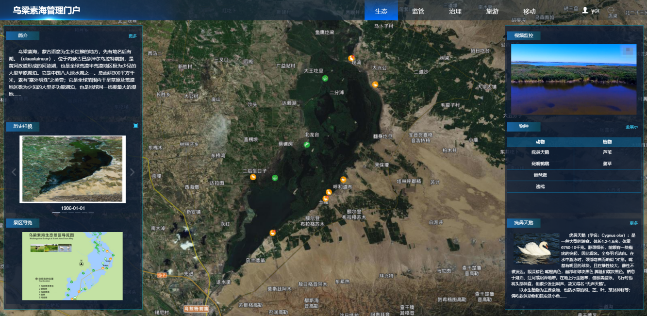 以文字、圖片、航攝影像的形式,對烏梁素海的地理環(huán)境、歷史樣貌、區(qū)域內(nèi)珍惜物種等信息進行宣傳展示,對生態(tài)環(huán)保的概念進行推廣普及。