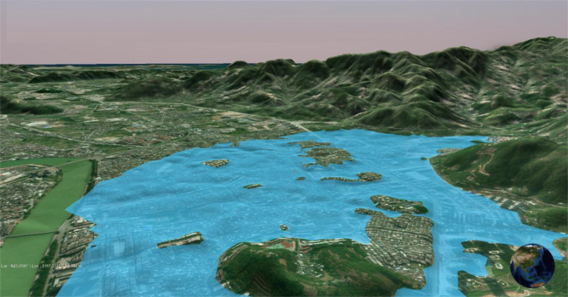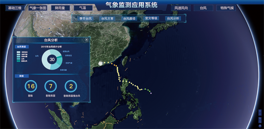 通過(guò)三維GIS技術(shù),結(jié)合氣象部門(mén)發(fā)布的氣象數(shù)據(jù)、現(xiàn)有的區(qū)域內(nèi)地形、河網(wǎng)等水文信息,構(gòu)建水利氣象監(jiān)測(cè)系統(tǒng)。基于氣象因素動(dòng)態(tài)分析,科學(xué)預(yù)測(cè)區(qū)域內(nèi)水域、水利造成的影響范圍及影響程度。針對(duì)極端天氣,例如臺(tái)風(fēng),系統(tǒng)會(huì)錄入臺(tái)風(fēng)的運(yùn)動(dòng)軌跡與時(shí)間信息,預(yù)測(cè)臺(tái)風(fēng)登陸的時(shí)間地點(diǎn),適時(shí)發(fā)出預(yù)警信息。