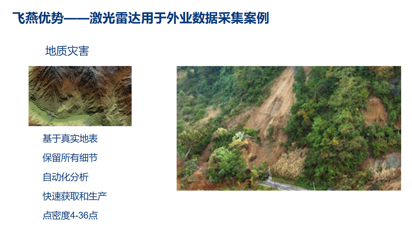 多年的深耕細作,使飛燕遙感積累出大量經驗,以激光雷達(LiDAR)測繪技術為核心,以自然災害監(jiān)測預警為突破口,提出一整套自然災害應急管理解決方案。